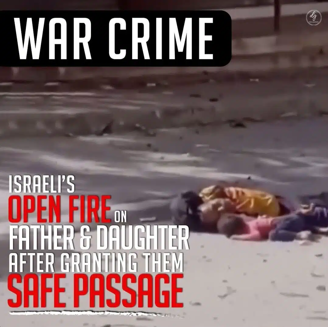 WAR CRIME ISRAELI’S OPEN FIRE ON FATHER & DAUGHTER AFTER GRANTING THEM SAFE PASSAGE