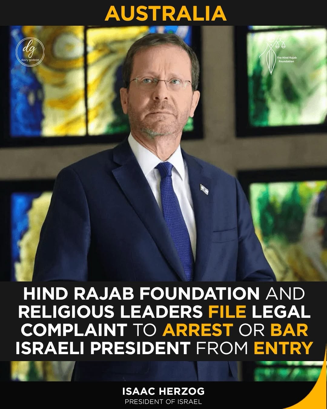 Hind Rajab Foundation Files Legal Complaint in Australia to Arrest or Bar Israeli President Isaac Herzog