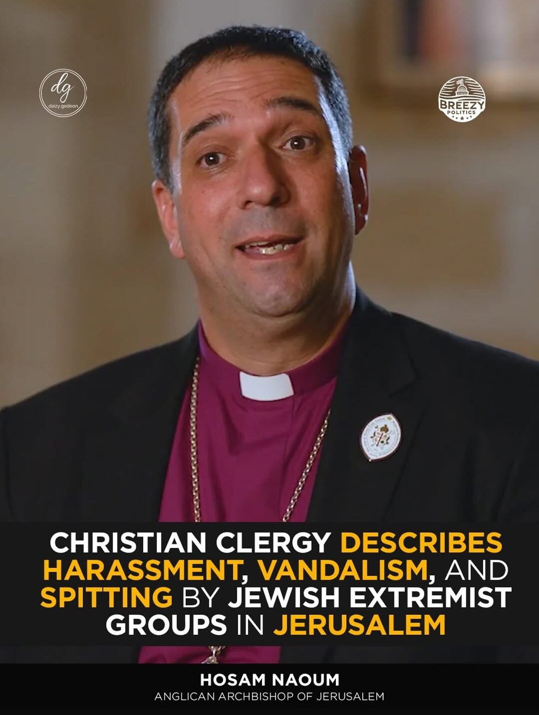 Jerusalem Archbishop Hosam Naoum Says Christian Clergy Face Harassment, Vandalism, and Spitting by Jewish Extremist Groups