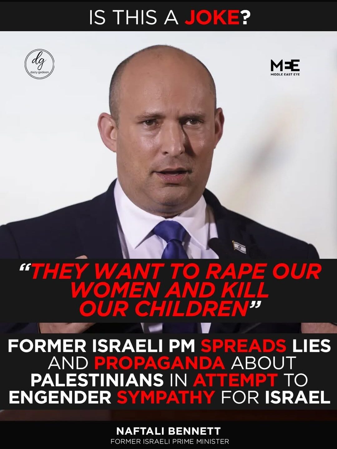 Naftali Bennett spreads sweeping claims about Palestinians “wanting to rape and kill” with no evidence, no distinction, no proof.