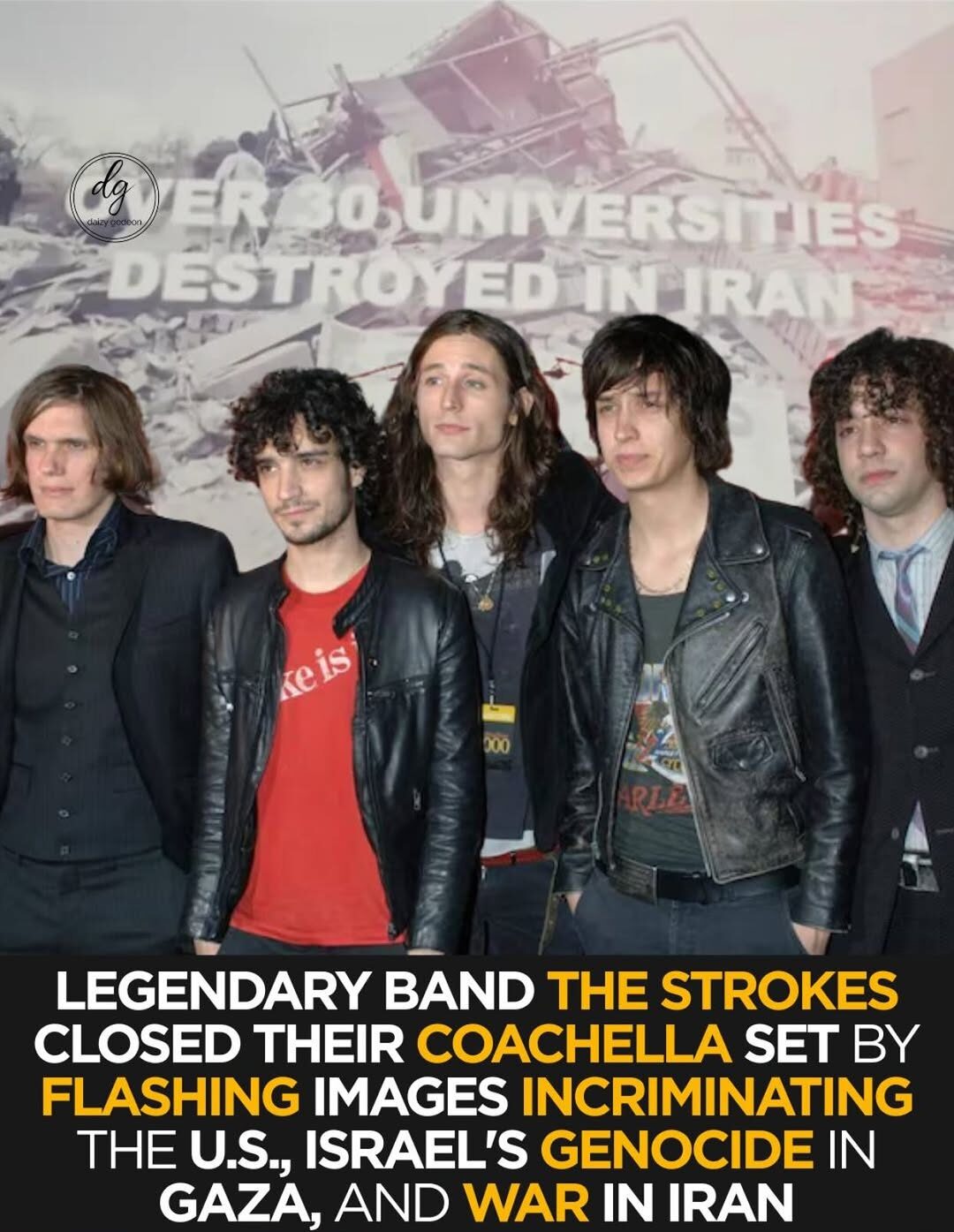 The Strokes Spark Controversy at Coachella with Gaza, Iran War Visuals on Giant Screens