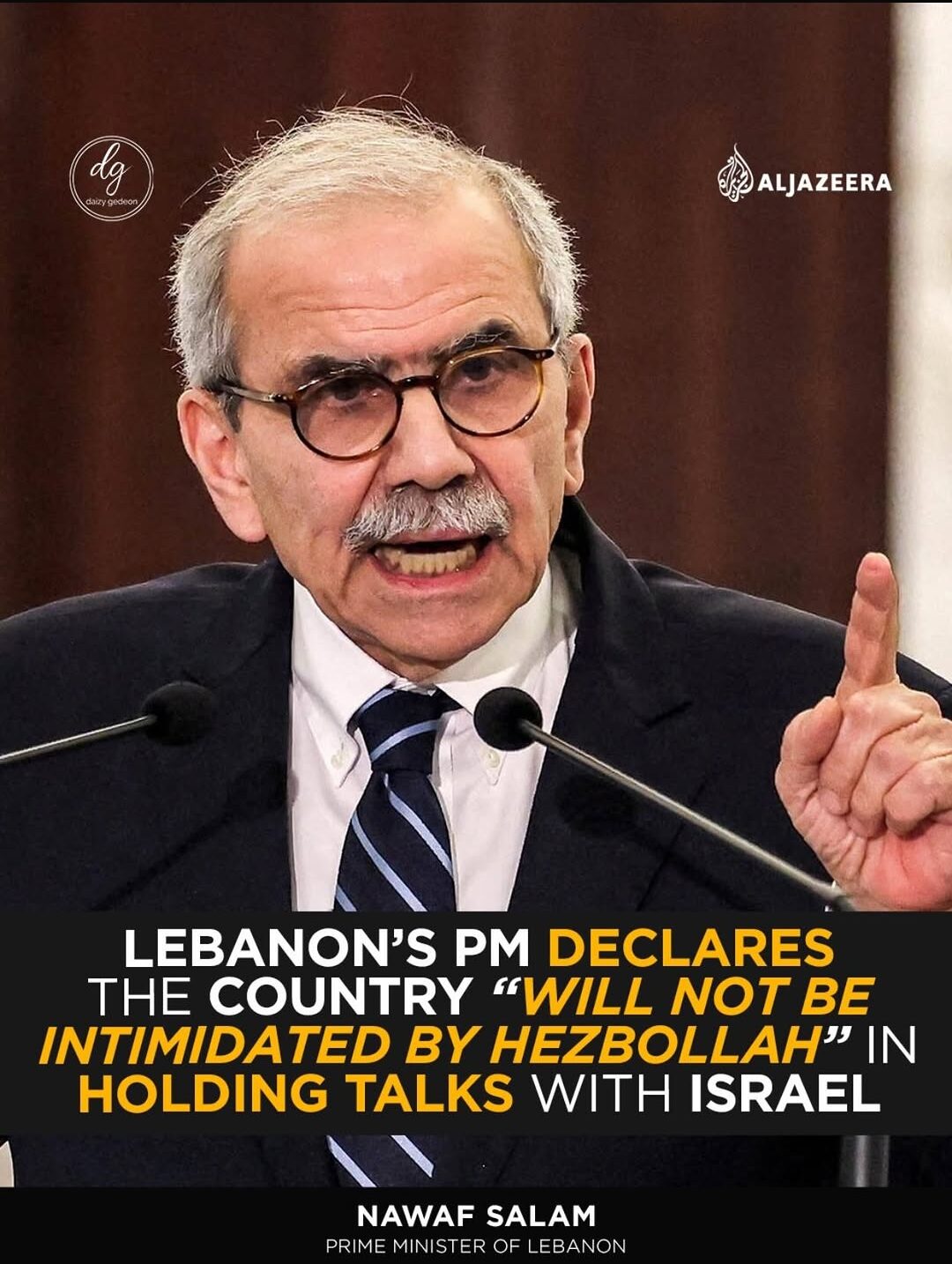 Nawaf Salam: You know that the President of the Lebanese Republic has called for the opening of direct negotiations with Israel, an initiative I fully support in the name of the sovereignty of the Lebanese state in making decisions regarding war and peace. We are pursuing this path, convinced that diplomacy is not a sign of weakness, but a responsible act so as to leave no avenue unexplored in restoring my country’s sovereignty and protecting its people. These negotiations promise to be demanding and require the active support of all our friends and partners. That said, we’re not seeking a confrontation with Hezbollah. On the contrary, I’d prefer to avoid a confrontation with Hezbollah, but believe me, we won’t be intimidated. Not by Hezbollah, and certainly not by those who are blowing the hot and cold air of civil war.
