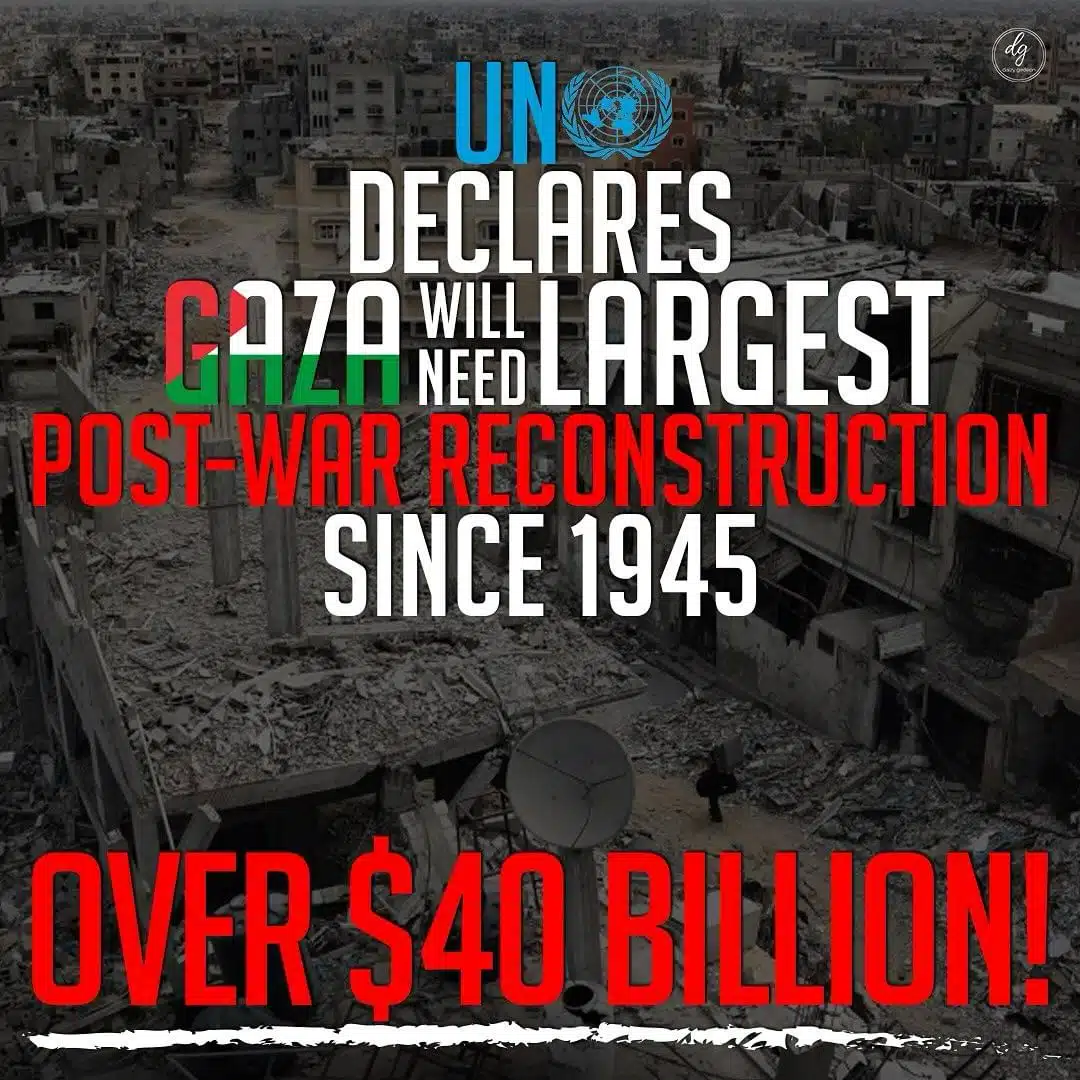 الأمم المتحدة تعلن أن غزة ستحتاج إلى أكبر عملية إعادة إعمار بعد الحرب منذ عام 1945 بقيمة تتجاوز 40 مليار دولار!